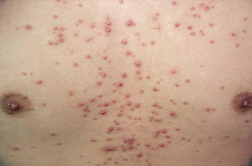特点三、皮损特点:初起为红色充实性丘疹,以后顶端迅速发展成丘疹性脓疮,继而干燥、结痂,痂脱不留痕迹。可分批出现,互不融合