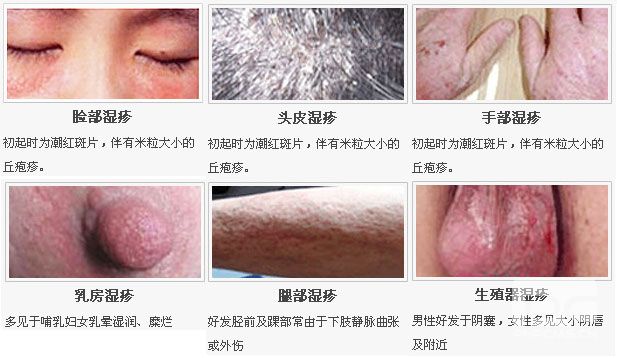 3、慢性湿疹症状:急 性、亚急性湿疹反复发作不愈易转为慢性湿疹。皮损多为局限性斑块,常见于手足、小腿、肘窝、乳房、外阴、肛门等处,边缘清楚。病程慢性,可长达数月或数年,也可因刺激而 急性发作。